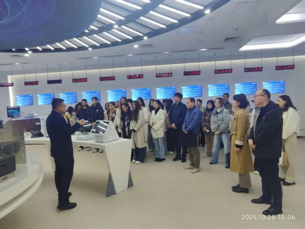 本站讯(通讯员 韩笑旭 王海娇)为深入贯彻落实党的二十届四中全会精神,学习科技企业党建与业务深度融合的先进经验,探索党建引领学院学科建设、科学研究、人才培养、就业育人的新路径,10月28日,计算机与信息工程学院党委书记刘锋率队赴恒银金融科技股份有限公司开展“党建赋能促融合 校企协同谱新篇”党建联学交流暨访企拓岗活动,与恒银金融科技股份有限公司党委副书记梁晓刚会谈。恒银金融科技股份有限公司副总裁兼董事会秘书张雪晶、恒银信息总经理蒋晗、行政总监赵恩朋,计算机与信息工程学院党委副书记、纪委书记曹陶科,副院长朱远平,以及学院师生党支部书记、学生党员、毕业班学生代表参加活动。