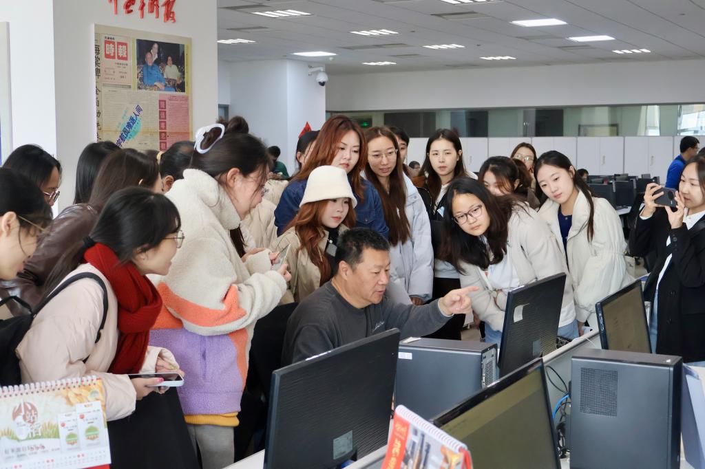 活动期间,同学们在工作人员引导下,参观了日报照排中心、新闻广播与交通广播直播间、广播播出中心等核心生产区域,系统了解海河传媒从传统媒体向深度融合转型的历程及“中央厨房”运作模式。通过实地观摩,同学们从课堂走向业界,直观感受现代传媒机构的运作流程与发展脉动。