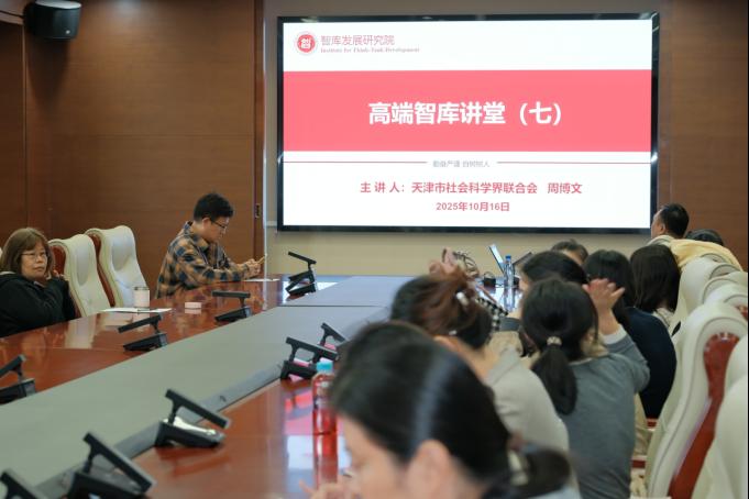第七期高端智库讲堂特邀天津市社会科学界联合会智库工作部、中央直报点负责人周博文同志主讲。周博文以“情报信息与咨政报告撰写”为题,围绕智库如何在信息调研工作中充分发挥作用展开阐释,系统介绍了新型智库在为党和政府建言献策、推动理论创新、引导社会舆论、服务社会需要及开展公共外交等方面的重要功能。他强调,一篇高质量的咨政报告应具备知识性、传递性、时效性三大核心要素,为参会人员搭建起咨政报告写作的基础认知框架。在咨政报告写作实践指导环节,周博文围绕咨政报告的选题方向、逻辑架构、数据支撑及语言表达等关键要素,结合典型案例,剖析了撰写过程中需规避的常见问题,强调报告需紧扣政策需求、凸显问题导向与对策可行性。针对选题策划,他提出要从“政治高度、理论厚度、时间深度、人文温度”四个维度出发,精准把握决策咨询需求,强化问题意识与问题导向,确保对问题对策的把握兼具准确性、敏锐性与前瞻性,为参会人员提供了清晰的写作思路与实践路径。