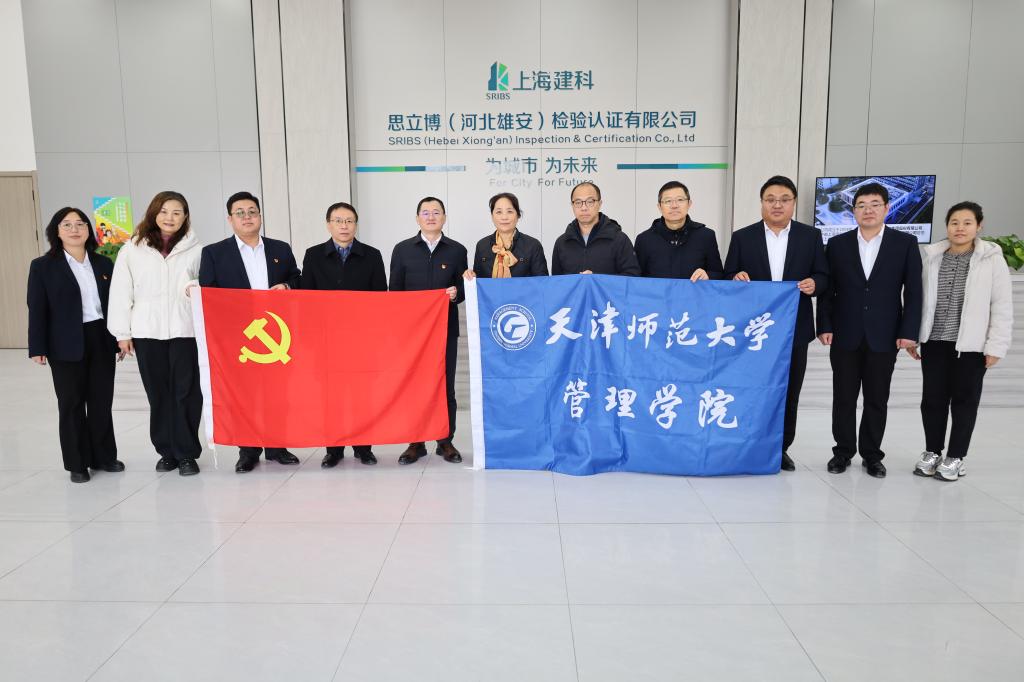 本站讯(通讯员 时晟蓉)为强化党建引领、深化校企合作、拓宽就业渠道,12月1日,天津师范大学管理学院党委书记张庆红,党委副书记、院长刘冰以及班子其他成员,赴河北省雄安新区开展党委理论学习中心组实践学习暨访企拓岗促就业活动。上海建科奥来国信(北京)检测技术有限责任公司党总支书记、董事长戚春元,上海建科思立博(河北雄安)检验认证有限公司党支部书记、总经理叶树青接待并一同开展活动。