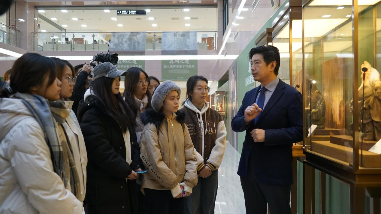 活动伊始,师生们于图书馆共同参观了“有相之道”泥人张世家作品展。此次展览集中呈现了46件(套)泥人张彩塑精品,生动地勾勒出泥人张世家六代父子衣钵相传、匠心坚守的近200年风雨历程。文学院师生们在张宇的讲解下近距离欣赏大师佳作,感受中华优秀传统文化的博大精深与永恒魅力,对泥人张彩塑这一扎根于天津沃土的国家级非物质文化遗产有了更深刻的体悟。