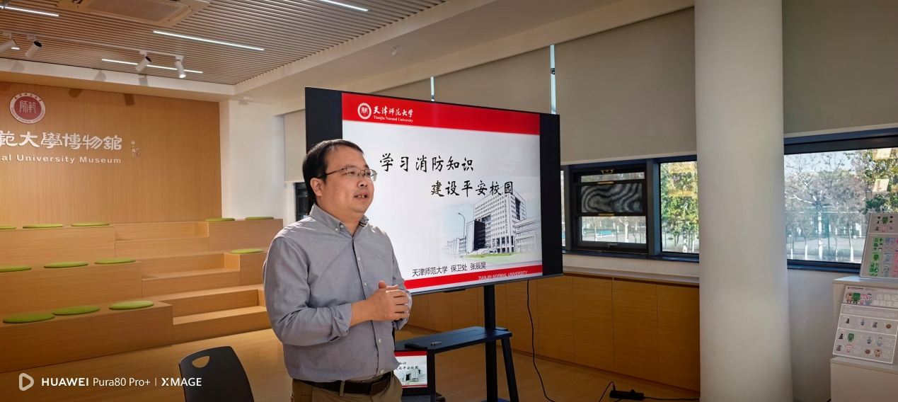 本站讯(通讯员 周二保)近日,为强化消防安全意识,提升应急处置能力,历史文化学院邀请学校保卫处副处长于宝海、消防科科长张辰昊,在天津师范大学博物馆社教空间向相关工作人员及社团志愿者学生团队开展了消防安全培训,活动由历史文化学院副院长耿华主持。