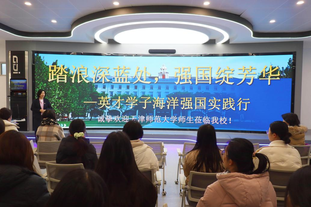 本站讯(通讯员 李倩 王雁)12月2日,天津师范大学“英才班”师生前往天津海运职业学院,开展以“探索海运科技,启迪教育未来”为主题的研学实践活动。活动旨在通过实地参访与沉浸式体验,拓宽师范生视野,增强其对现代科技与产业发展的理解,为未来教育事业注入新动能。海运职业学院航运经济系党委书记韩凌、副主任孙琳全程陪同讲解。