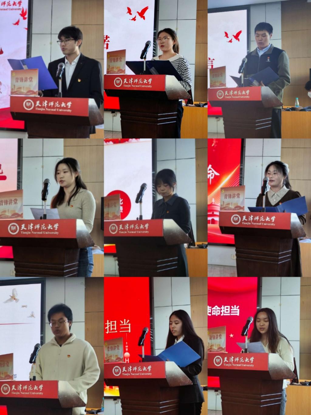 微党课宣讲环节,学生党员围绕学习贯彻党的二十届四中全会精神,紧扣“以作风淬炼青春底色,用行动诠释使命担当”主题,结合理论学习和成长实践,分享了学习感悟与新时代青年的责任担当。两名正在新疆支教的学生党员也通过视频连线,讲述了他们在祖国边疆践行初心使命的切身感悟。