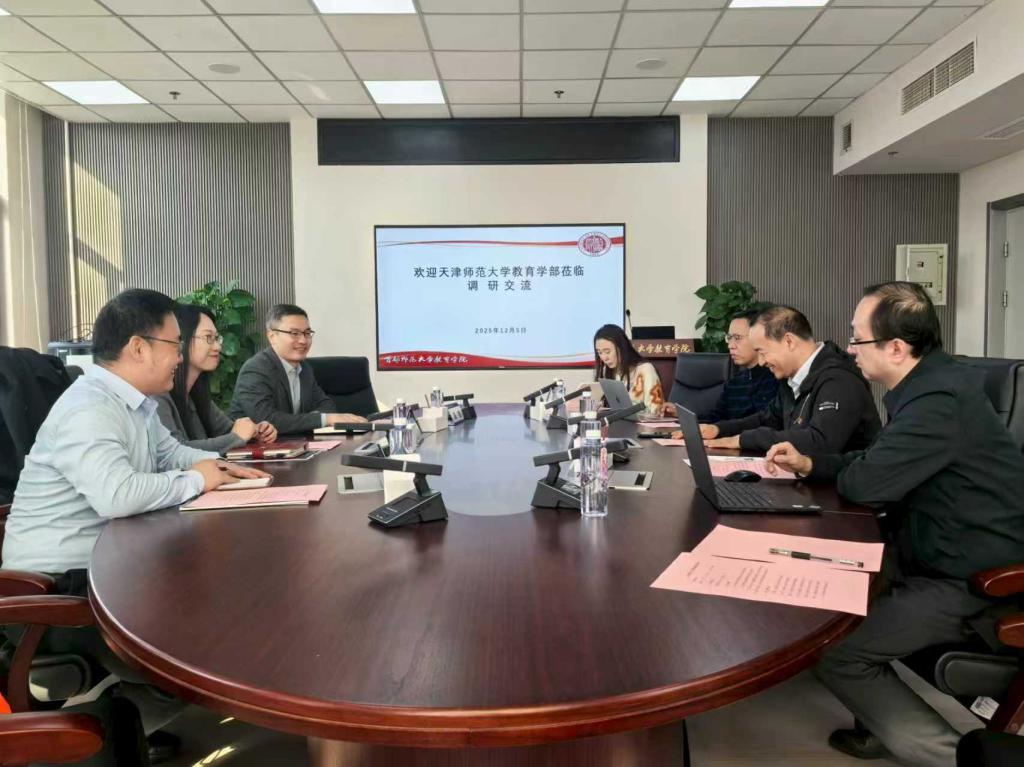 本站讯(通讯员 王立冬)为深入贯彻党的二十届四中全会和全国教育大会精神,落实《教育强国建设规划纲要(2024—2035年)》要求,积极服务京津冀协同发展国家战略,12月5日,教育学部党委副书记吴文婧、副部长高维、郭文良一行赴首都师范大学教育学院座谈交流。首都师范大学教育学院党委书记陈志永,副院长薛海平、王东等参加座谈交流。座谈会由陈志永主持。