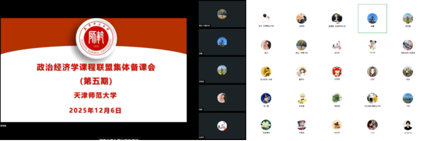 本站讯(通讯员 白帆)12月6日,由天津师范大学经济学院承办的全国政治经济学课程教学联盟第五期集体备课会在线上举行。全国14所高校的33位任课教师齐聚“云端”,围绕《马克思主义政治经济学概论》(第二版)第五章 “资本主义生产”,通过说课展示、跨校议课、专家点评等环节凝聚教学共识,助力课程教学质量提质增效。