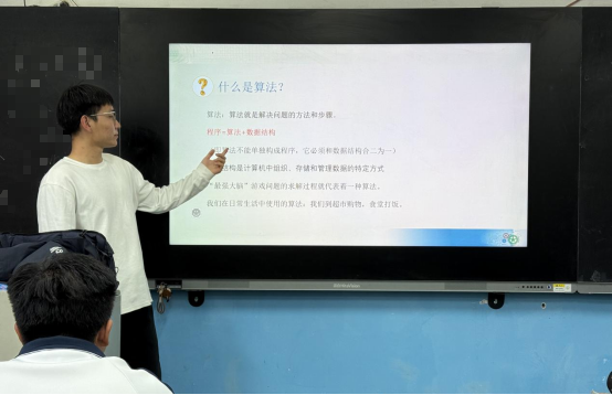 着眼学生信息素养的长远培养,支教团推动成立了“智创”算法思维科技创新社团。社团以算法思维为核心,通过开展生活化编程、逻辑训练、算法模型构建等教学活动,引导学生掌握分解、模式识别、抽象和算法设计等关键能力。教学采用项目式学习与任务驱动相结合的方式,引导学生运用所学解决实际问题,并逐步将算法思维应用于优化校园路径、设计信息处理流程等真实场景。