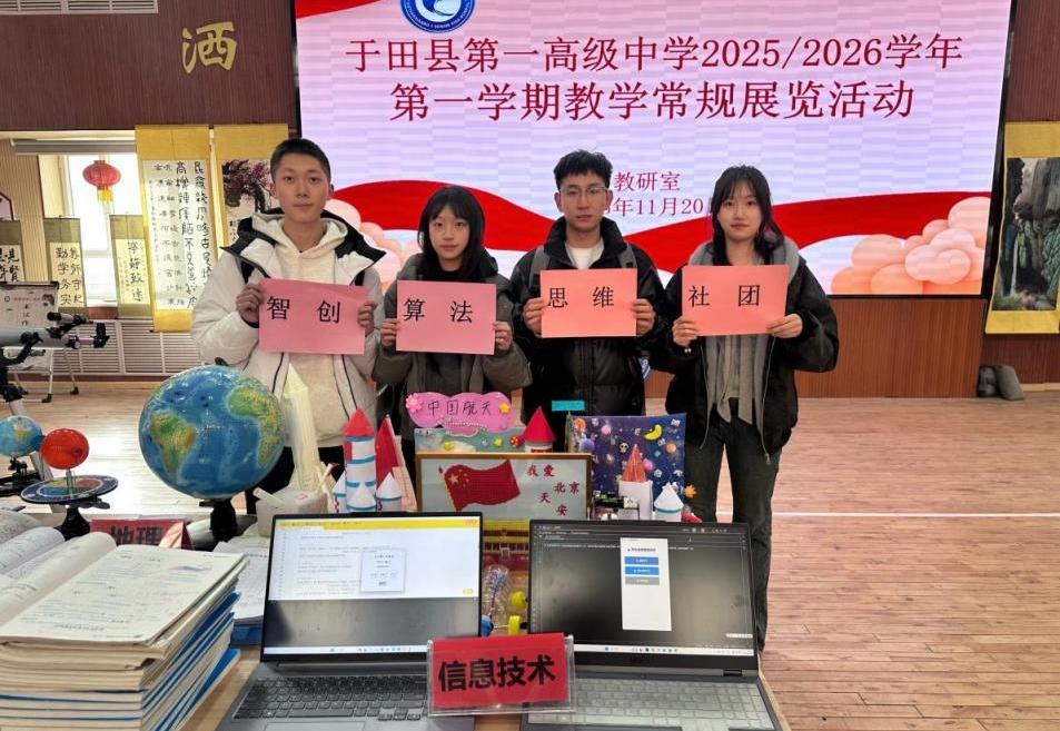 本站讯(通讯员 徐可)为深入学习贯彻党的二十大精神,贯彻落实第三次中央新疆工作座谈会和第九次全国对口支援新疆工作会议部署要求,持续打造天津教育援疆品牌,2025年9月,天津市启动第十五批“金石榴”大学生西部支教团赴新疆和田地区开展实习支教工作。按照市教育两委统一部署,我校选派52名师生参与本批次支教任务。其中,来自计算机与信息工程学院的蒋岱峰、苏紫璇、潘迪、李越四位同学作为支教团高中信息技术组成员,在于田县第一高级中学(以下简称“于田一高”)通过技术赋能教学管理、搭建科技创新平台,为当地高中教育教学注入新的活力。他们积极开发“体育选课走班系统”和创建“智创”算法思维科技创新社团,助推于田一高教育教学提质增效,书写了校地协作、共育新人的生动篇章。