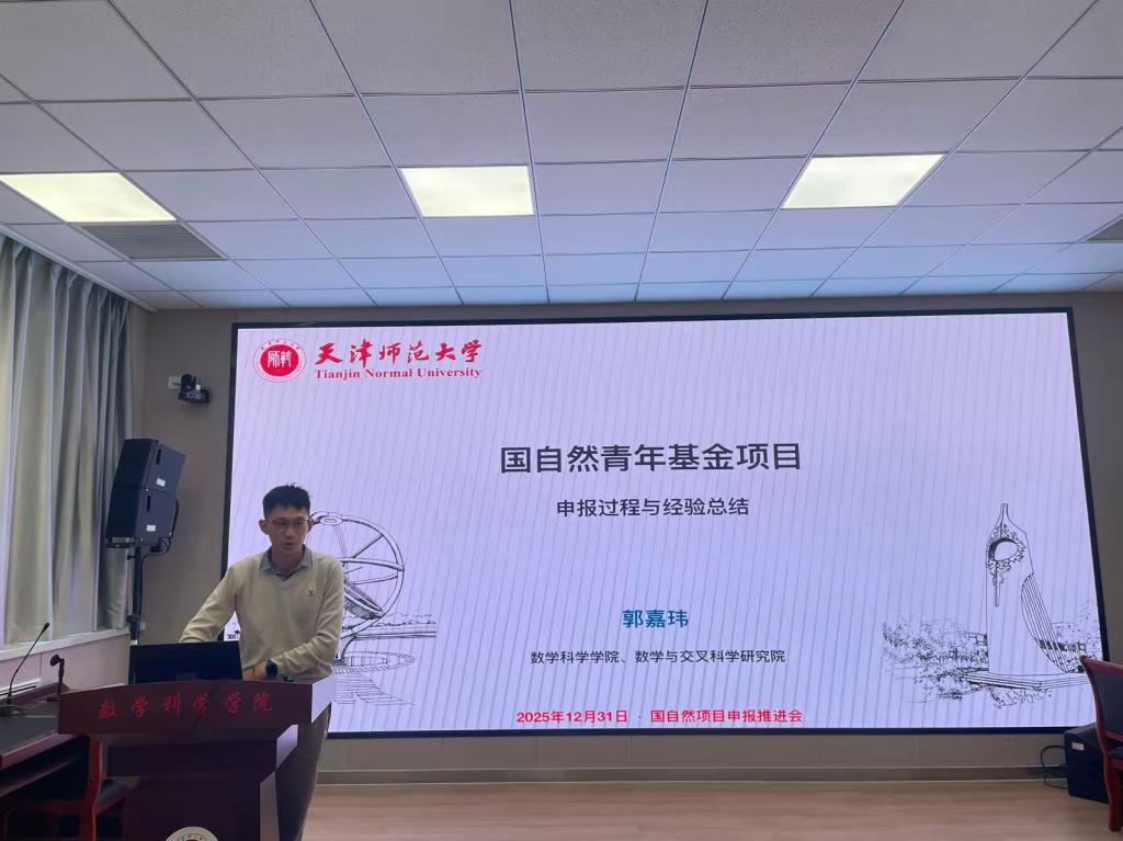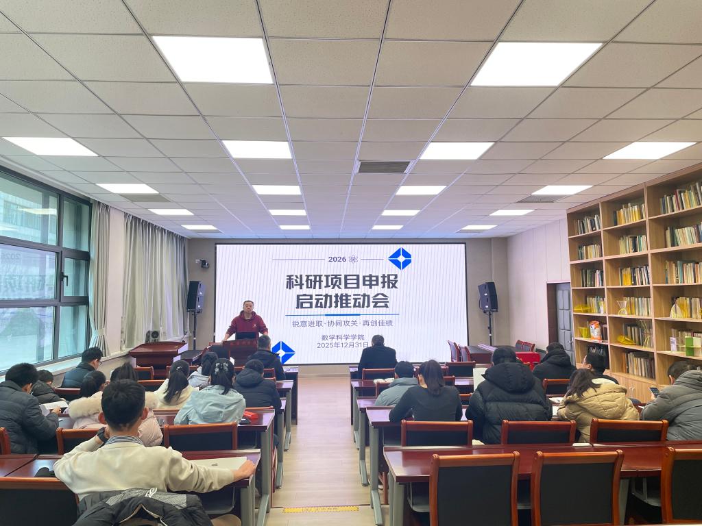 此次科研项目申报推动会以党的二十届四中全会精神为指导,通过基金申报政策解读、经验交流与专题研讨,进一步统一思想、厘清方向,为2026年度科研项目申报凝聚共识、明确路径。立足新起点,数学科学学院将以此次会议为契机,进一步强化有组织科研,深入贯彻落实校党委巡察工作要求与学校科研大会精神,持续深耕基础研究,加强交叉协同与联合攻关,力争产出更多高质量成果,为学校事业高质量发展提供坚实支撑。