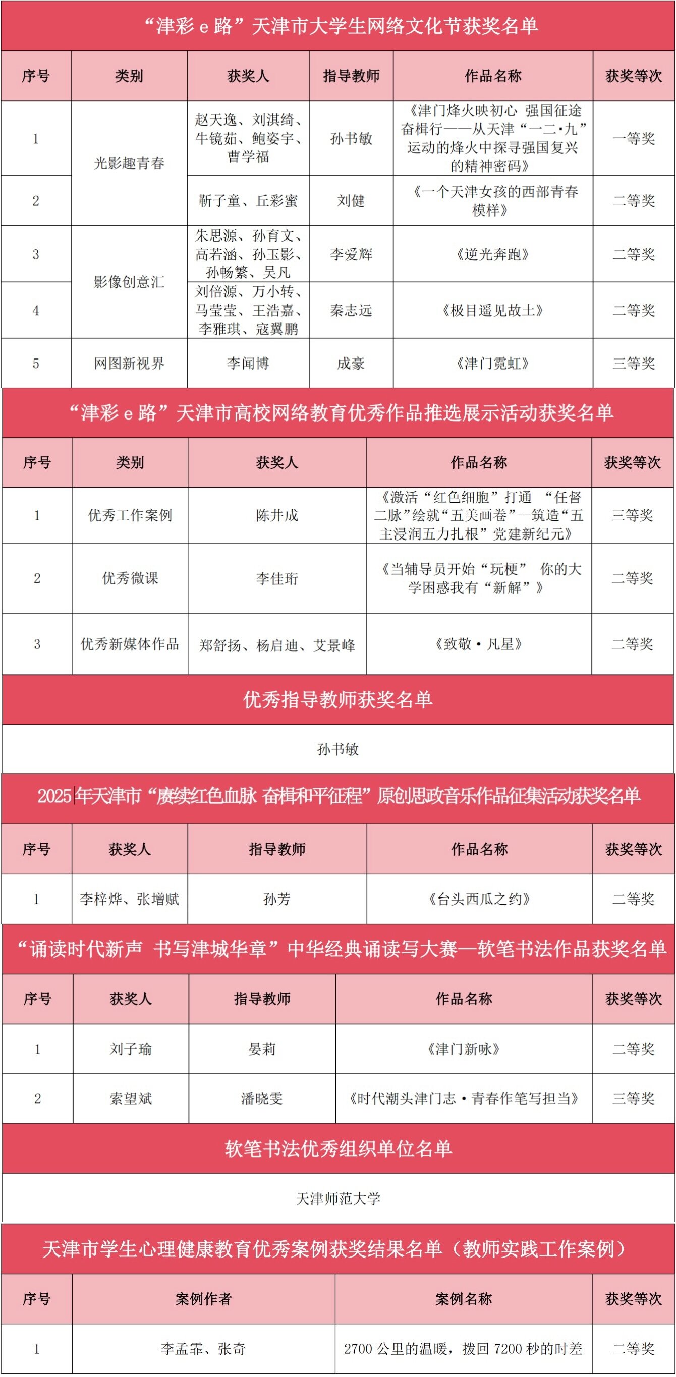 本站讯(通讯员 杨晨)近日,中共天津市教育工作委员会、天津市教育委员会两委公布了思想政治类系列比赛评审结果,我校师生取得了多项佳绩。