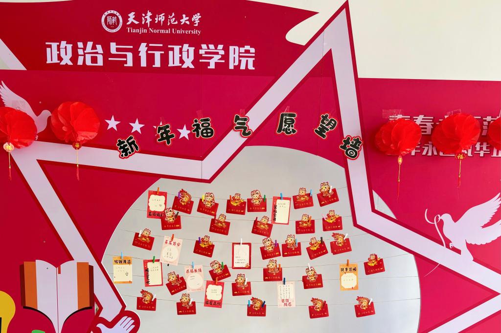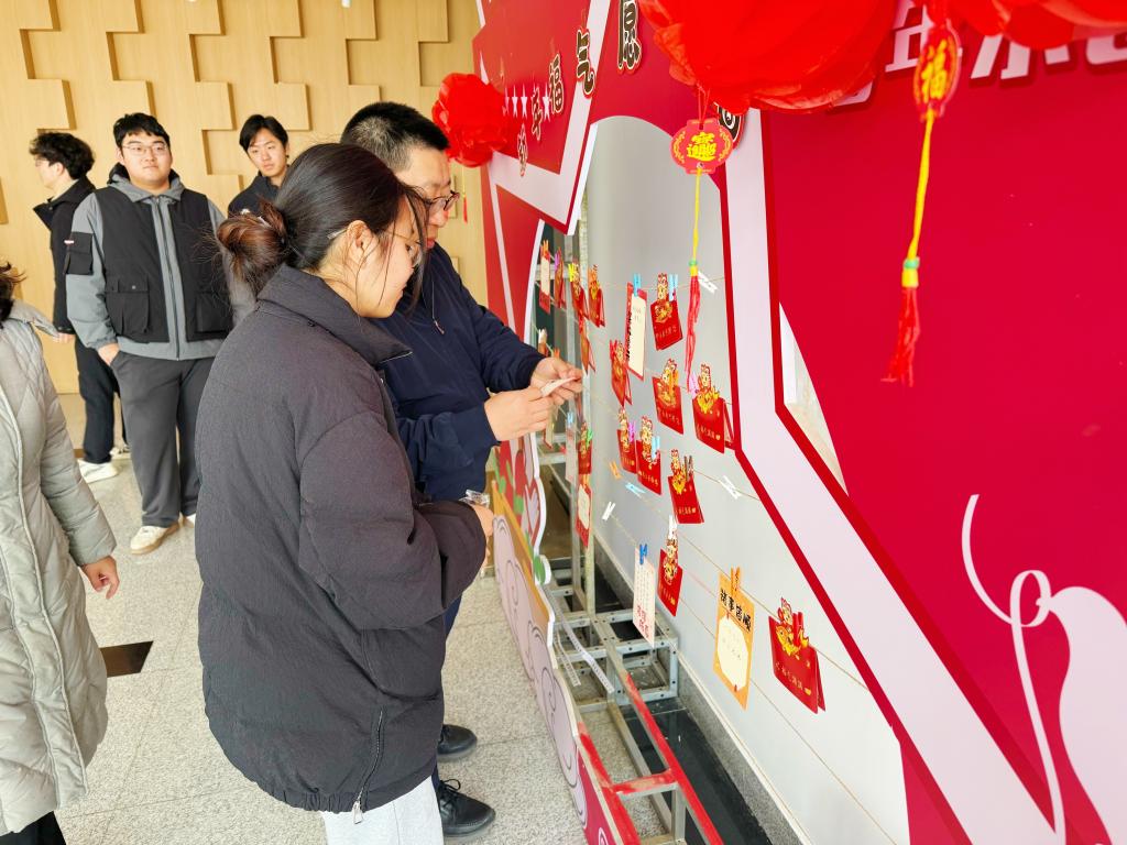 “愿新的一年学业进步,万事顺遂”“希望家人平安健康,自己能多参加志愿活动”“愿学院发展越来越好,师生情谊长存”……活动现场另一边,同学们提笔凝思,在许愿墙上写下祝福挂满心愿,寄托着师生的真挚情感与对新学期的美好期许。