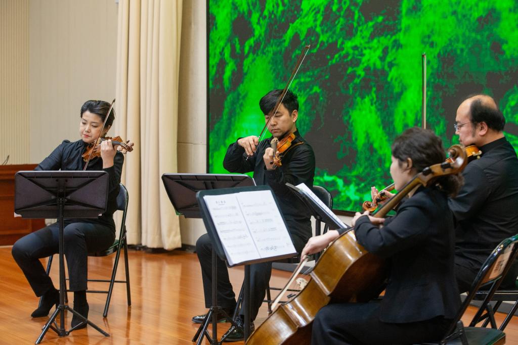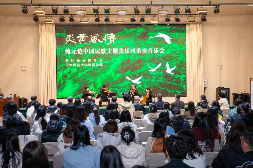 本站讯(通讯员 陈洁)3月19日,地理学部联合天津市地理学会举办“炎黄风情”中国民歌主题弦乐四重奏音乐会,天津市地理学会副理事长汪东川教授、天津市地理学会艺术地理专业委员会部分成员代表以及地理学部领导班子成员出席音乐会,来自校内外120名师生代表齐聚一堂,共同聆听这场跨越山河的艺术盛宴,感受地理空间与音乐艺术的深度对话。