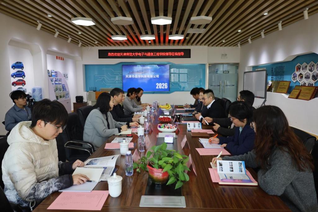 本站讯(通讯员 严迪)为深入贯彻落实高校毕业生就业工作部署,深化产教融合、校企合作,精准对接企业人才需求,全力推动毕业生高质量就业,3月20日上午,电子与通信工程学院党委书记杨庆、院长张宝菊率队走访天津岳华科技有限公司,与天津岳华科技有限公司董事长廖明开展调研座谈。电子与通信工程学院党委副书记、纪委书记华阳,天津岳华科技有限公司部门负责人以及电子与通信工程学院师生代表参加座谈。