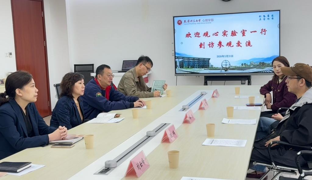 会前,观心实验室一行观看学部宣传片,并实地参观实验室,深入了解学部在心理学基础研究及应用转化方面的硬件条件和研究成果。