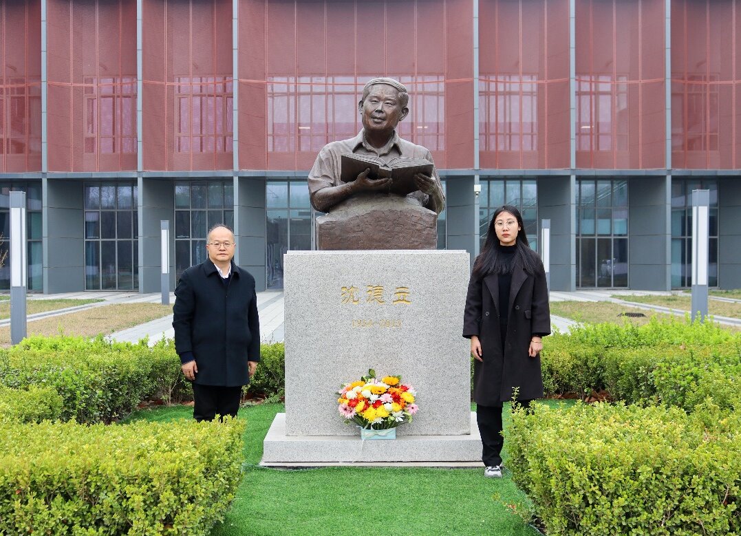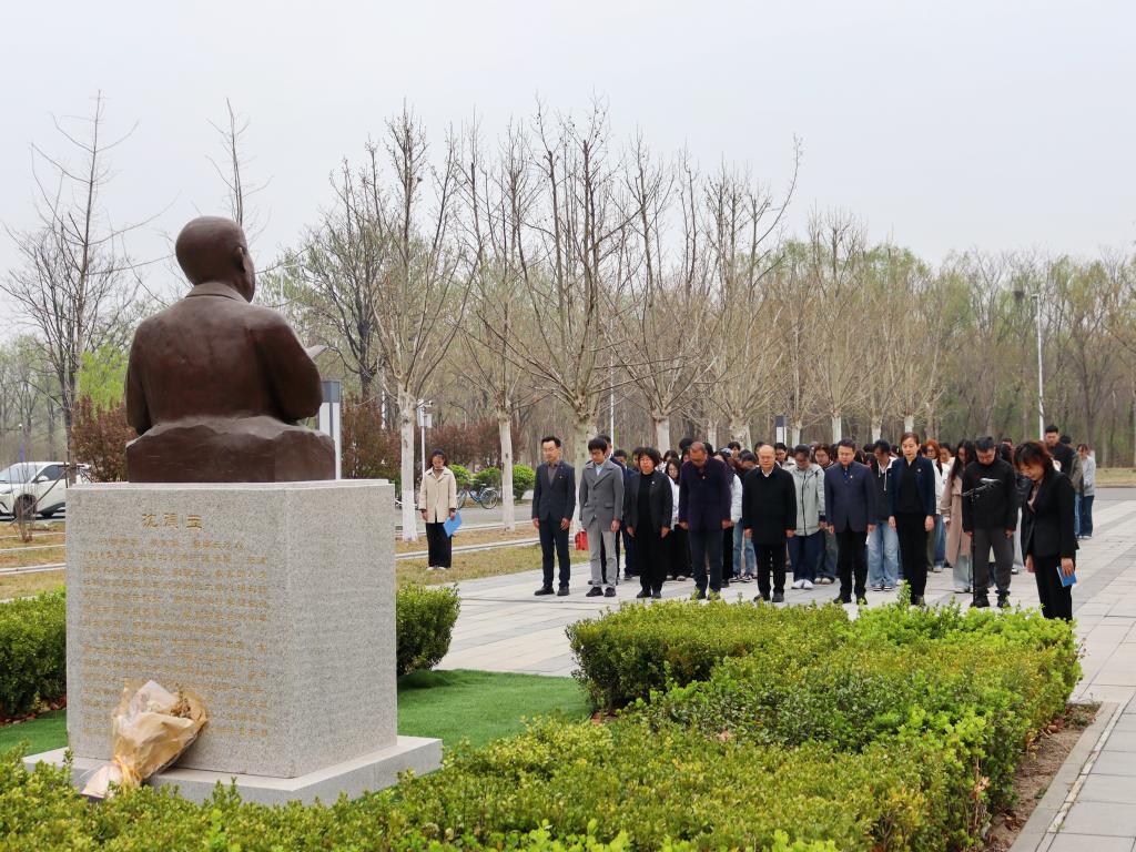 活动伊始,白学军与学生代表冯萌萌缓步上前,向先生铜像敬献花篮。全体师生凝望铜像,脱帽肃立,三鞠躬并默哀一分钟,表达对沈先生的深切追思。