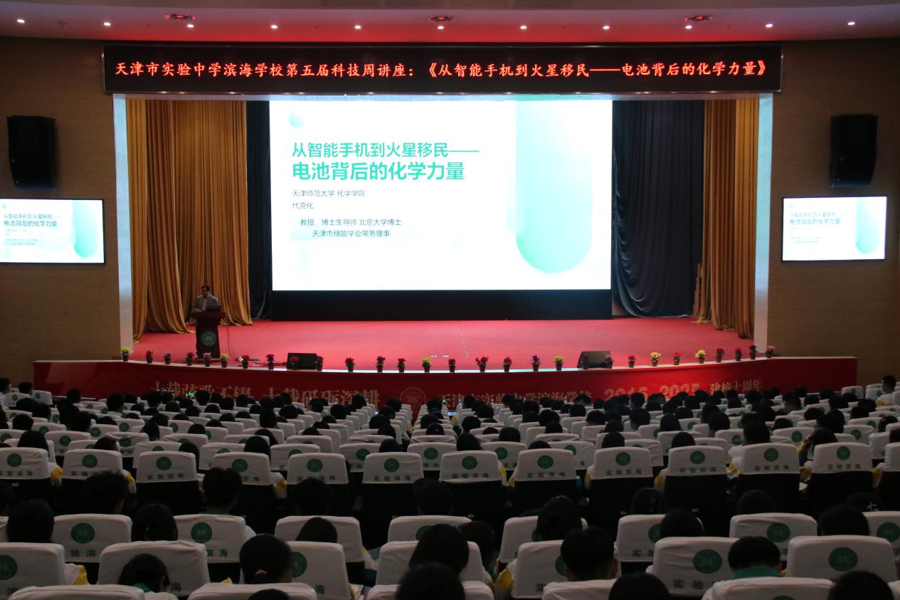 座谈会后,化学学院教师、天津市特聘教授代克化为高中年级学生进行了“从智能手机到火星移民——电池背后的化学力量”科普讲座。他从人类能源史讲起,回顾能源利用发展历程,讲解锂离子电池工作原理、性能及优缺点,并分享我国在新能源电池研发和应用方面的成就及前沿发展方向。现场气氛活跃,同学们积极提问。此次讲座在同学们心中播下科学的种子,激发了同学们对化学学科的热爱,大家纷纷表示未来要投身国家能源科技研究,为现代化强国建设贡献青春力量。