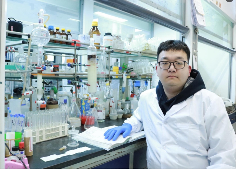 白浩浩至今还记得大二那年第一次穿上实验服、走进化学学院有机合成实验室的情景。形状各异的试剂瓶和反应设备、通风橱的低鸣、测试仪器闪烁的灯光——这一切让他感到新奇,也让他心底某个开关被轻轻拨动。