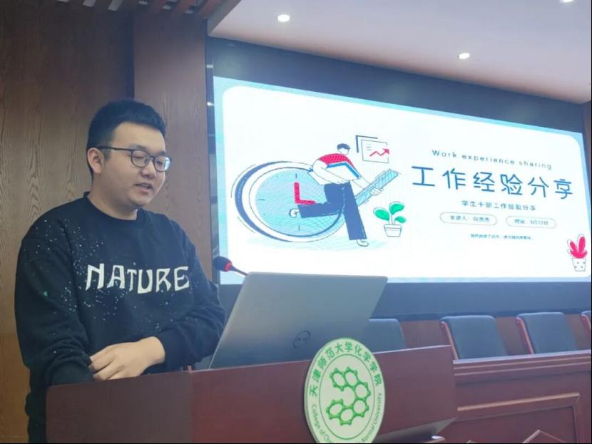科研之外,白浩浩还有另一个身份——有机化学专业的班长。他是老师和同学之间“靠谱的桥”。日常信息传达、学业奖学金评定、毕业生就业联络……与同学学习生活息息相关的事务填满了他的课余时间,但他从不敷衍。